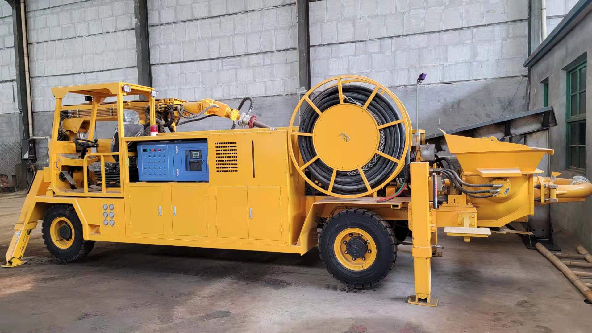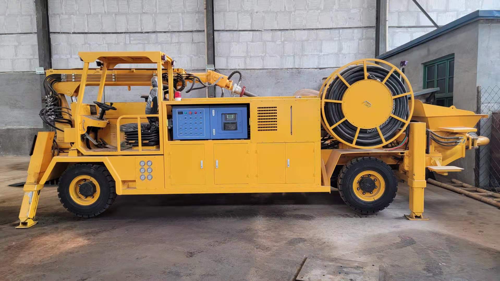 3) 速凝劑添加系統(tǒng)采用軟管泵,流量大、壽命長、可靠性好。可根據(jù)需要調(diào)節(jié)比例,外加劑的摻量和混凝土泵送輸量均可通過工控屏或遙控器實時監(jiān)控和調(diào)節(jié)。