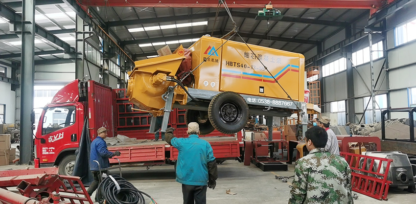 工作原理:當液壓系統(tǒng)壓力油進入一主油缸時,活塞桿伸出,同時通過密封回路連通管的壓力油使另一活塞桿回縮。與主油缸活塞桿相連的混凝土輸送活塞回縮時在輸送缸內(nèi)產(chǎn)生自吸作用,料斗中的混凝土在大氣壓力作用和攪拌葉片的助推作用下通過滑閥吸入口被吸入輸送缸。同時,另一主油缸在油壓的作用下,推動主油缸的活塞桿伸出并同時推動混凝土活塞壓出輸送缸中的混凝土,通過滑閥輸送口Y字管進入混凝土輸送管。動作完成后,系統(tǒng)自動換向使壓力油進入另一主油缸,完成另一次不同輸送缸的吸、送行程。如此反復(fù),料斗里的混凝土就被吸入和壓送出輸送缸,通過Y型管和出口連接的管道到達作業(yè)點,完成泵送作業(yè)。